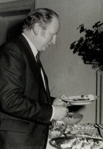 „Schmutzige und kranke Kartoffelschalen, gefrorenes Kraut oder ähnliche Dinge“ hinuntergeschlungen. Rudolf Bernhardt am Buffet anlässlich der Einführung von Karl Doehring und Jochen Frowein als Mit-Direktoren 1981 [63]